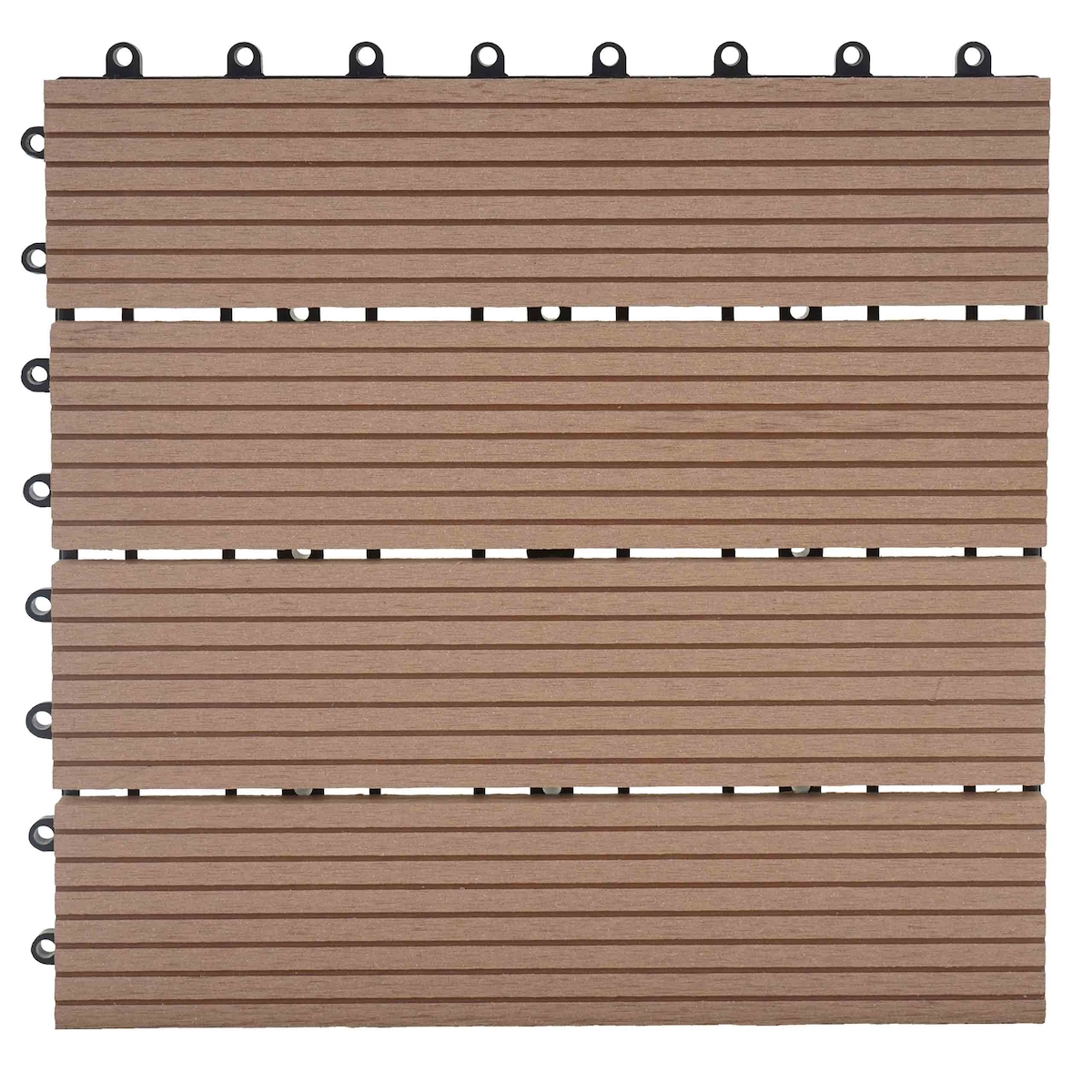 Mendler WPC Bodenfliese Rhone, Holzoptik Balkon/Terrasse, 11x je 30x30cm = 1qm ~ Premium, teak linear