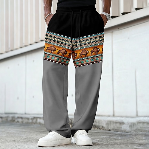 Per uomo Motivo Geometrico Toro Etnico Pantaloni da tuta Pantaloni Pantaloni casual Misura del girovita medio Casual Vintage Retrò All'aperto Caccia Allenamento Coulisse elastica in vita Pantaloni a