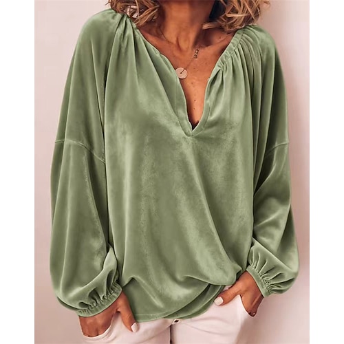 Per donna Velluto Blusa Semplice Attivo Elegante Manica Lunga Scollo a V Top Regolari Quotidiano Ferie Uscire Arricciato Bottoni Nero Vino Blu marino Verde smeraldo Oro Primavera Autunno