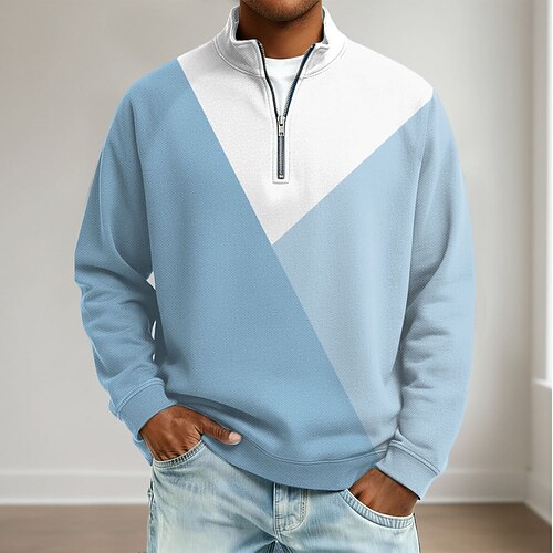 Per uomo Blocco di colori Polo con zip Manica Lunga Magliette polo Colletto alla coreana Casual Scuola Athleisure Ferie Abbigliamento quotidiano Stampa 3D Polo con cerniera a un quarto Primavera