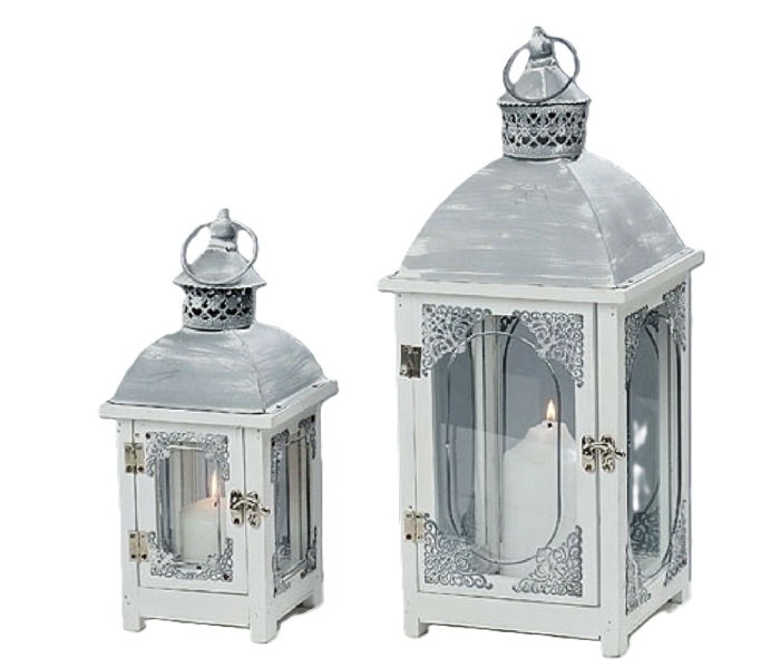 Kerzenlaterne Bally Holz H.32/46 B.14/20 cm weiß grau 2er Set