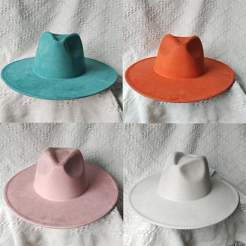 New Color Malachite Green Suede Top Hat Big Edge 9.5Cm Peach Heart Top Jazz Hat Simple And Fashionable 56-58cm camel