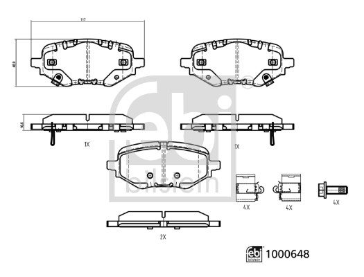FEBI BILSTEIN Bremsbelagsatz, Scheibenbremse 1000648 hinten rechts links für HONDA 43022-3Y1-G01