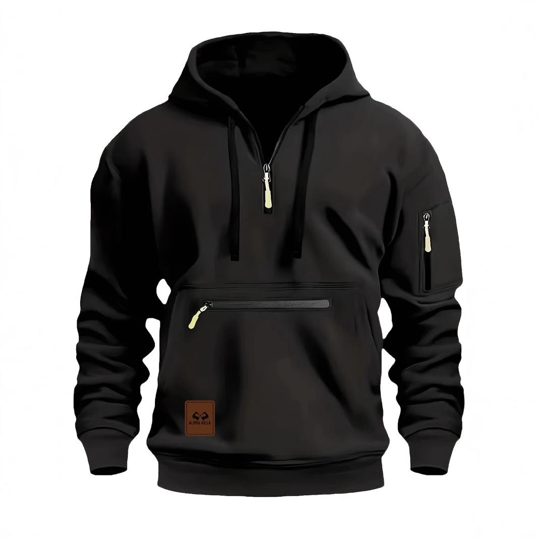 Herren Wasserdichter Multi-Taschen Reißverschluss Hoodie - Herbst/Winter Sportliche Freizeit Sweatshirt cm schwarz