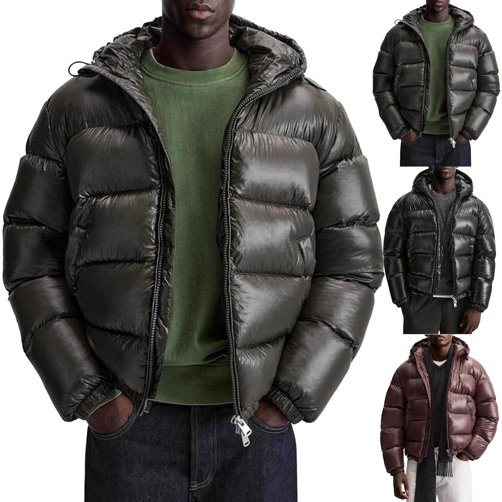 Herren Casual einfarbige langärmlige Kapuzenjacke mit Baumwollfüllung, Herren verdickte warme lockere Taschen Brotjacke Mantel cm