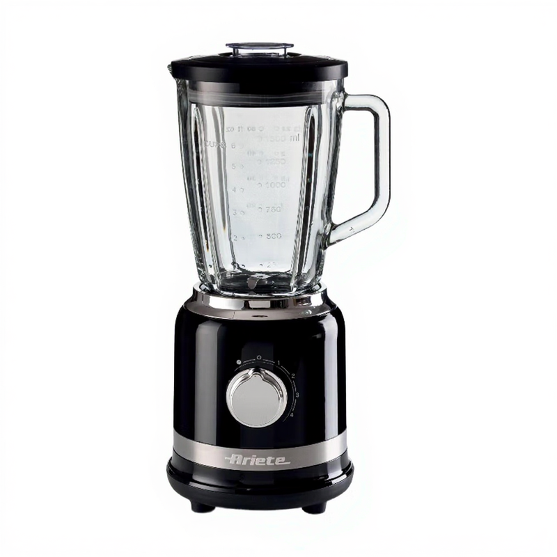 Ariete 585 Moderner Standmixer 1000W, 1,5L Glasbehälter mit Eiszerkleinerung, 4 Geschwindigkeiten & Impulsfunktion, 4 Edelstahlklingen, für Smoothies, Suppen, Cocktails - Schwarz