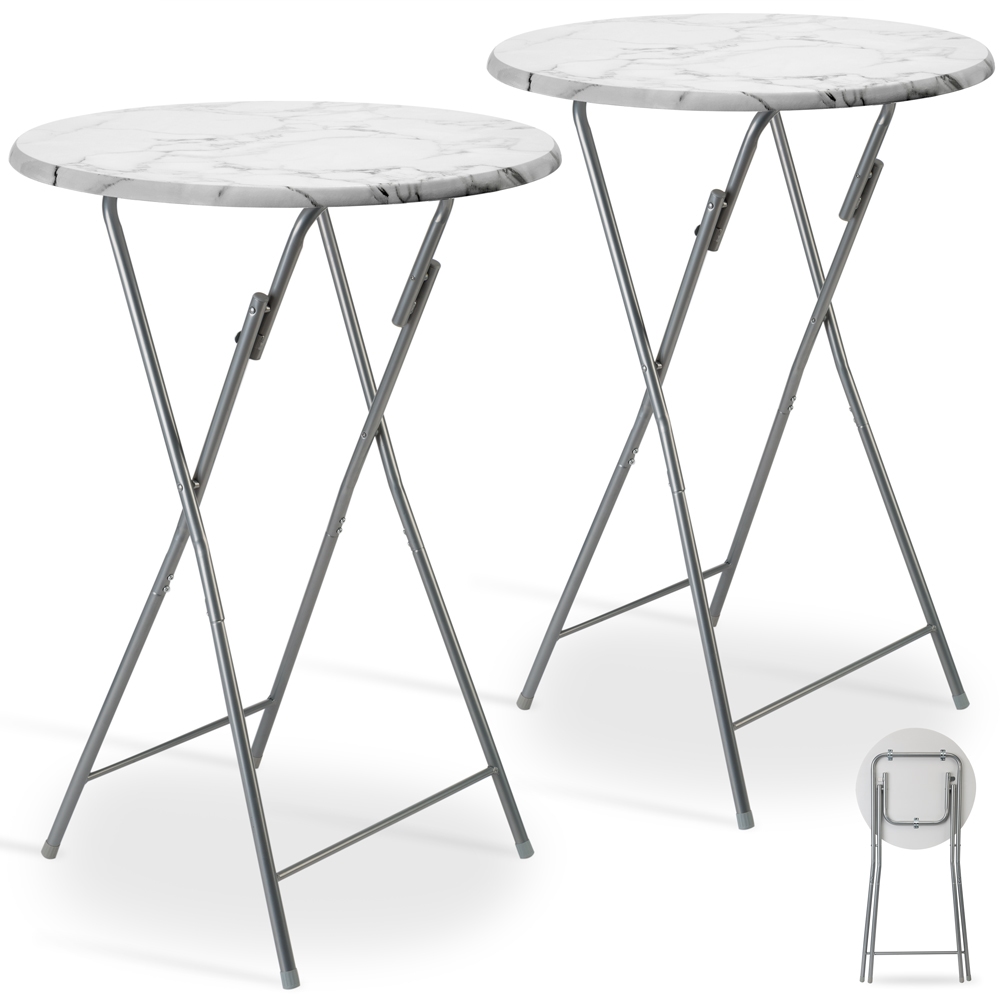 Casaria Stehtisch 2er Set Bistrotisch Klappbar 60cm Marmor Optik Weiß Grau