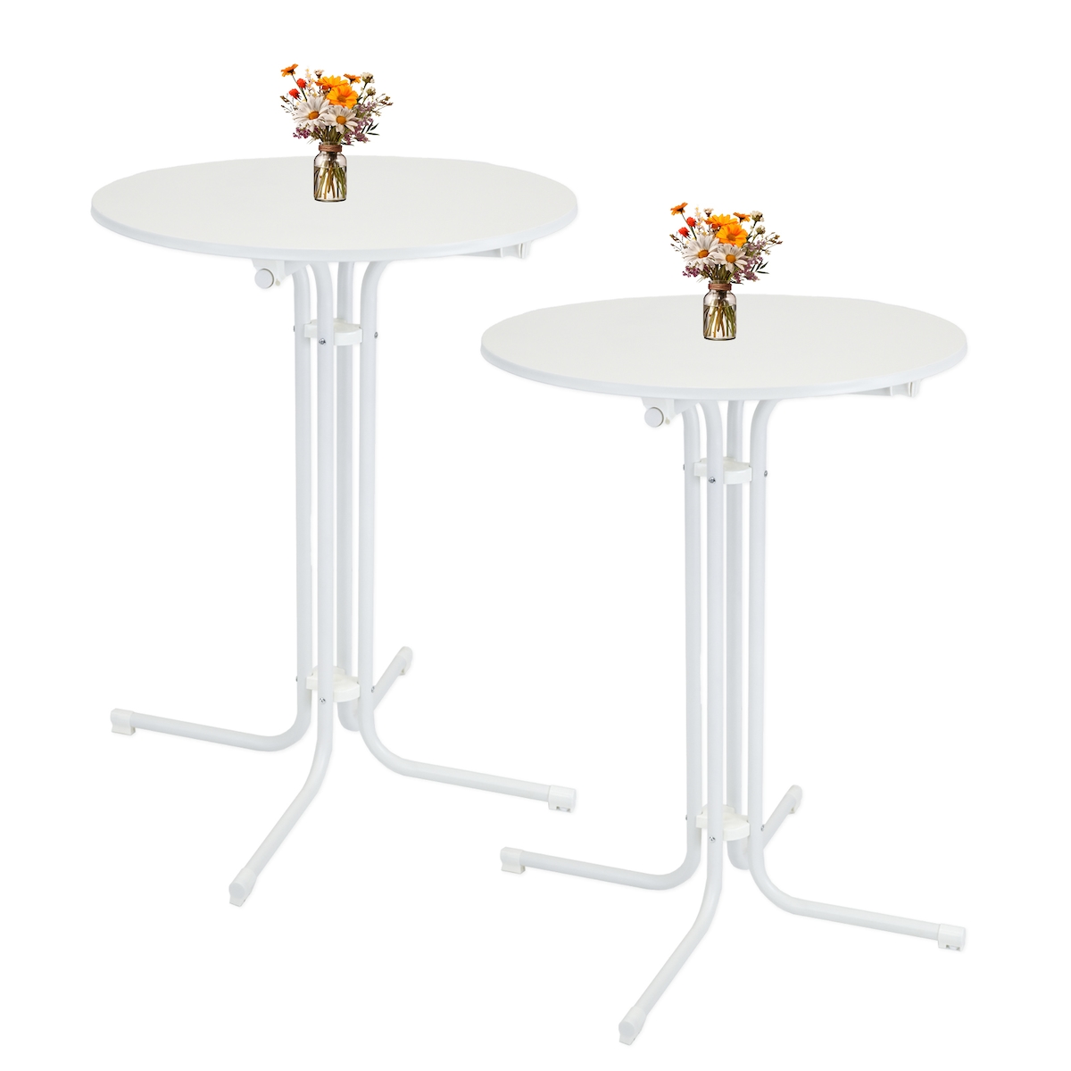 TRUTZHOLM 2x Stehtisch klappbar Ø 80 cm Höhe 110 cm Stahl Gastrotisch Partytisch Bistrotisch Tisch in Weiß
