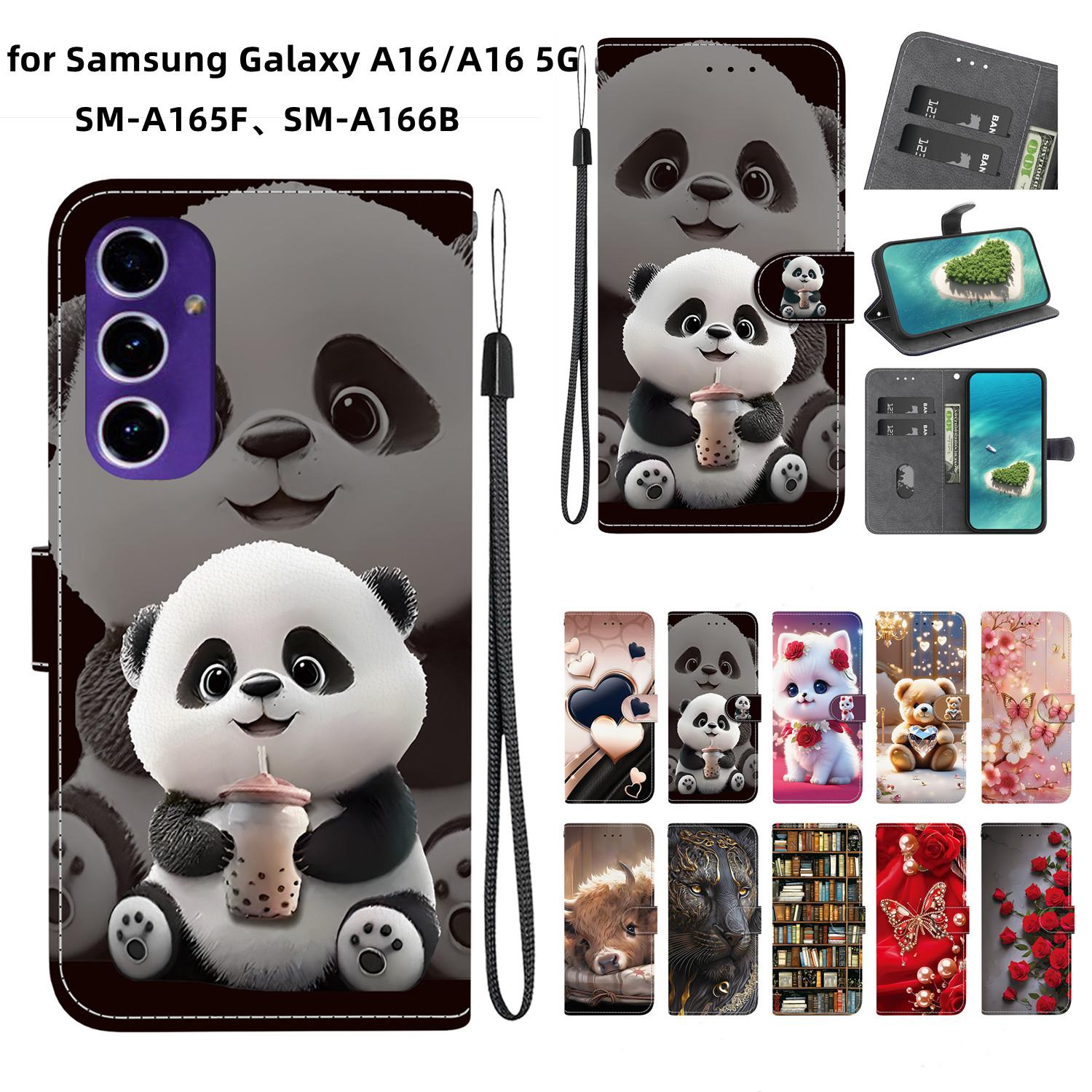 Étui à rabat en cuir PU fait main pour Samsung Galaxy A16 4G/5G (A165F/A166B)- Housse Antidérapante Antichoc avec Dragonne et Motifs Chat Cœur/Rose ro