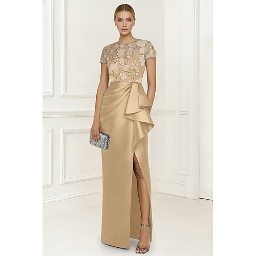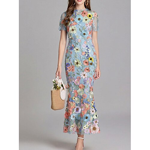 Abiti da Festa Sirena Abito Vintage Matrimonio Ospite Lunghezza Caviglia Maniche Corte Collo Rotondo Tulle con Ricami Abiti