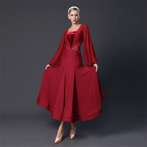 abito da ballo da sala per allenamento da donna, costumi da danza moderna, abiti standard da valzer a maniche lunghe