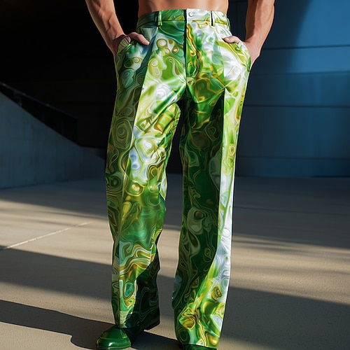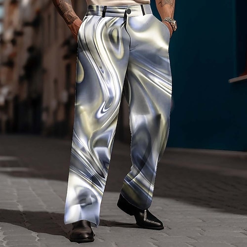 Per uomo Geometrico Illusione ottica Laser Pantaloni Eleganti Pantaloni Pantaloni da Abito Misura del girovita medio Casual Ferie Abbigliamento casual alla moda Pantaloni eleganti con vestibilit