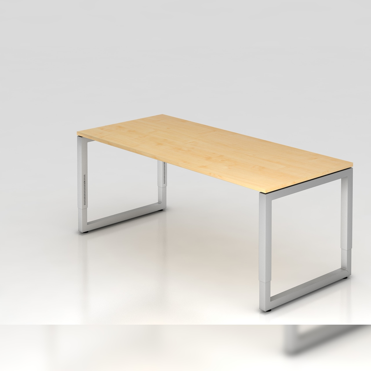 bümö Schreibtisch "Q-Serie" höhenverstellbar, Tischplatte 180 x 100 cm in Ahorn, Gestell in silber