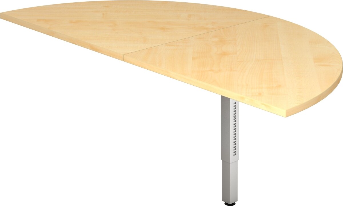 Hammerbacher Anbautisch 160x80cm 2xViertelkreis/Fuß eckig Ahorn/Silber
