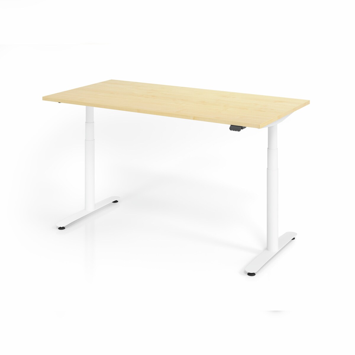 PROREGAL Sitz-Steh-Schreibtisch Rauno | Ahorn | Weißes GestellBxT 160x80cm | Höhe 63-127cm | elektrisch stufenlos höhenverstellbar | T-Fuß Gestell
