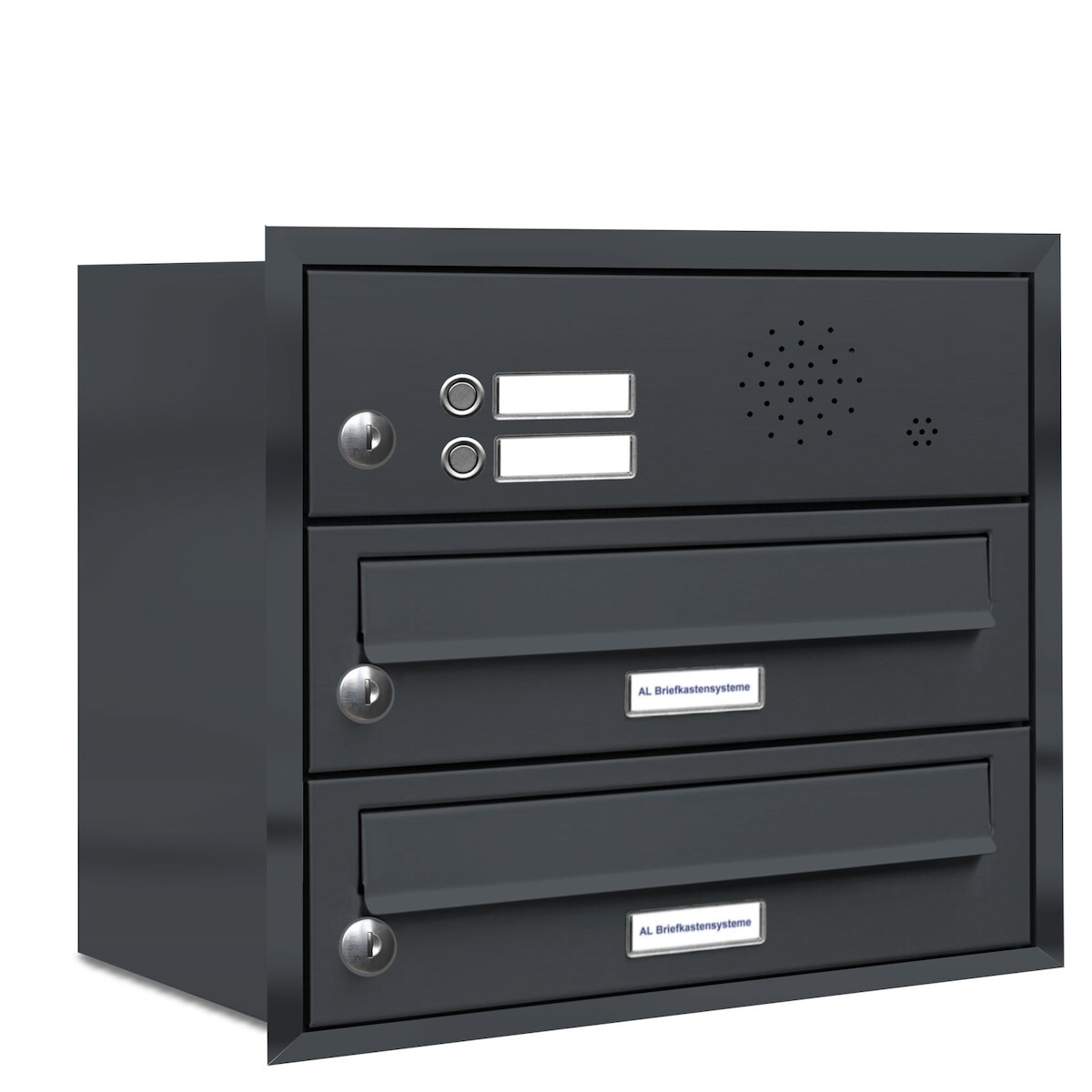 AL Briefkastensysteme 2 Fächer Premium Unterputz Briefkasten Anlage mit Klingeln RAL 7016 Anthrazit Grau, A4, wetterfest, Artikelnummer 132P2U1KSP7016