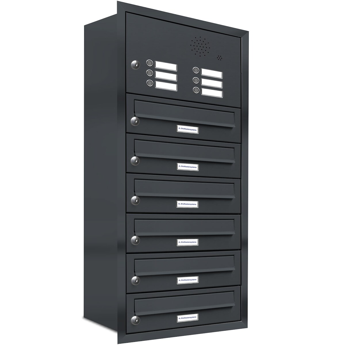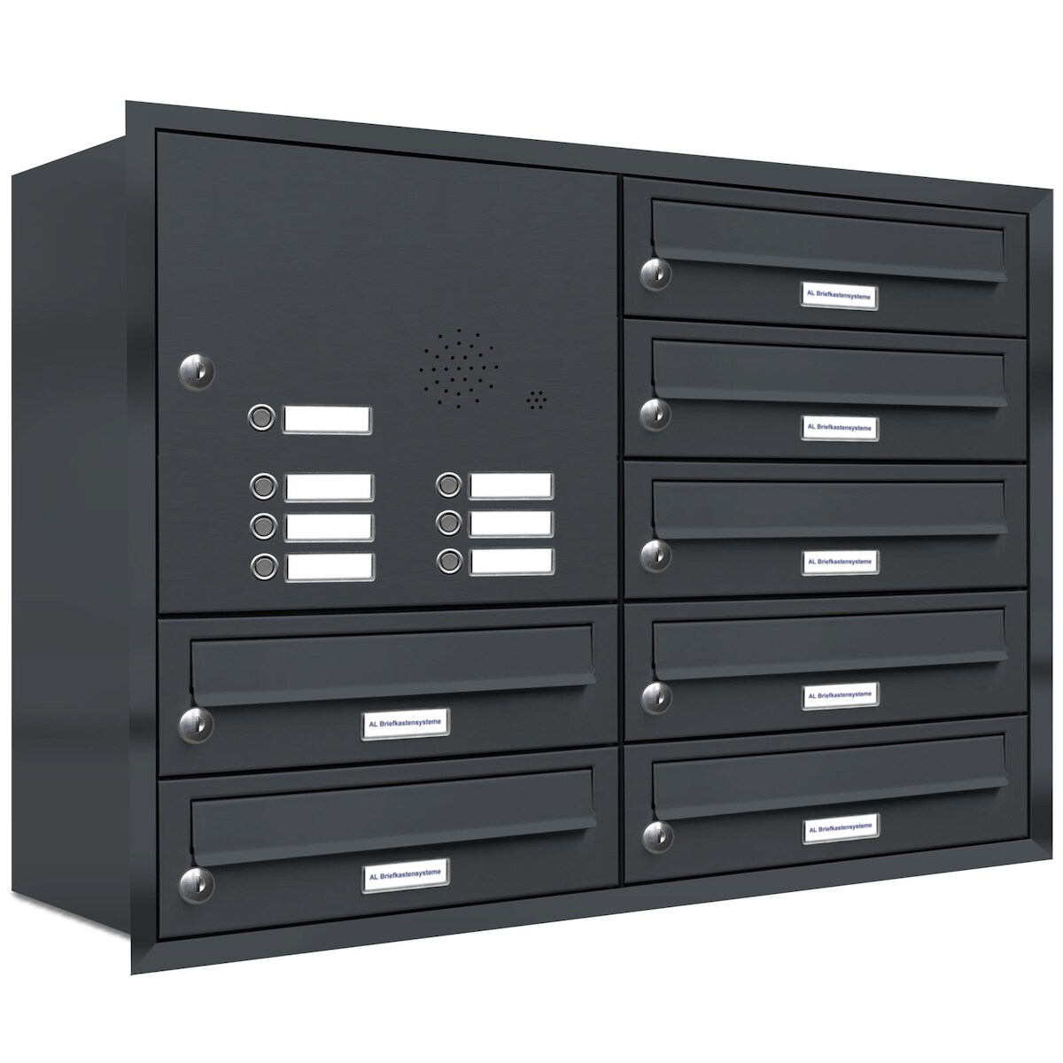 AL Briefkastensysteme 7 Fächer Premium Unterputz Briefkasten Anlage mit Klingeln RAL 7016 Anthrazit Grau, A4, wetterfest, Artikelnummer 132P7U2KSP7016