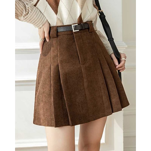 Per donna Casual Mini Vita Alta Gonne Semplice Arricciato Pieghettato Inelastico Quotidiano Streetwear Nero Cachi Caffè Autunno Velluto a coste Poliestere