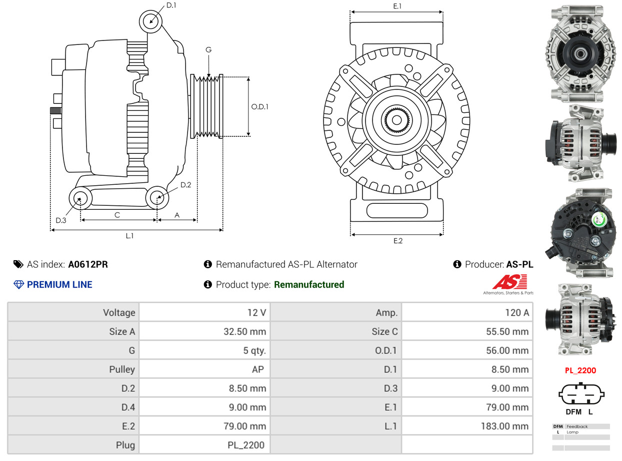 AS-PL Generator A0413 12V 100A für GENERAL MOTORS DAF OPEL 90540884 6204037 6204157