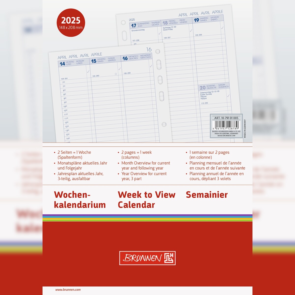 Brunnen Wochenkalendarium (Spaltenform) 14,8x20,8cm A5 1 Woche/2 Seiten 2025 Packung mit 3 Stück