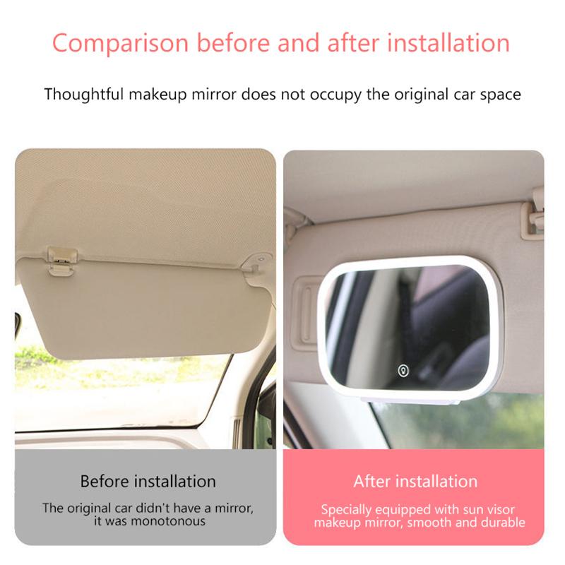 Mini Auto Innenraum Make-up Spiegel Sonnenblendenplatte LED Spiegel für Mädchen Frauen Wiederaufladbares Fülllicht Universeller Schminkspiegel weiß