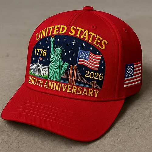 Cappello da baseball ricamato per il 250° anniversario degli Stati Uniti, statua della libertà bandiere americane, berretto commemorativo per il giorno dell'indipendenza