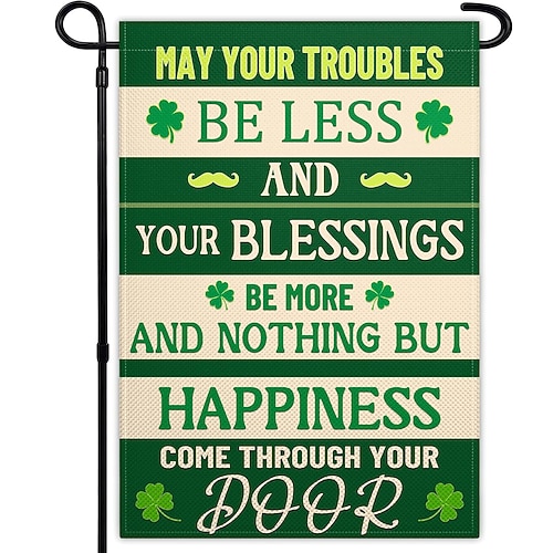 Confezione da 2 bandiere da giardino irlandesi per il giorno di San Patrizio, bandiera decorativa da cortile in lino con stampa bifacciale Lucky Grass Pie