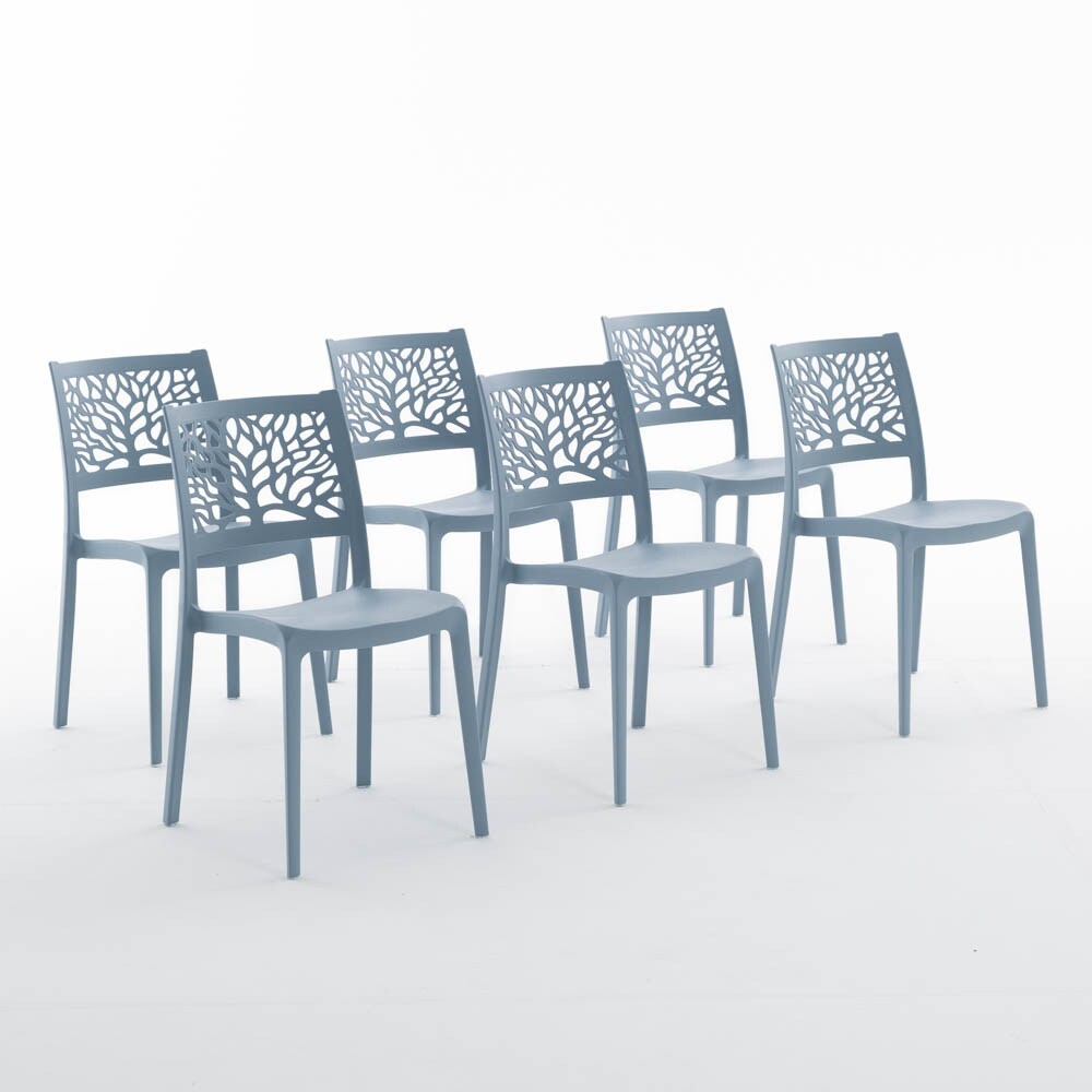 RATTATAN 6er-Set stapelbare Stühle aus Polypropylen mit Glasfasern für Außenbereich und Garten, Bar und Restaurant, Küche modernes Design - FLORA - Zement