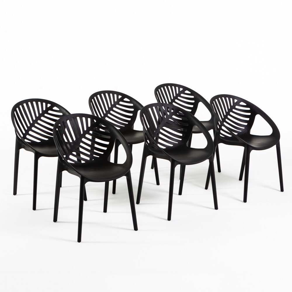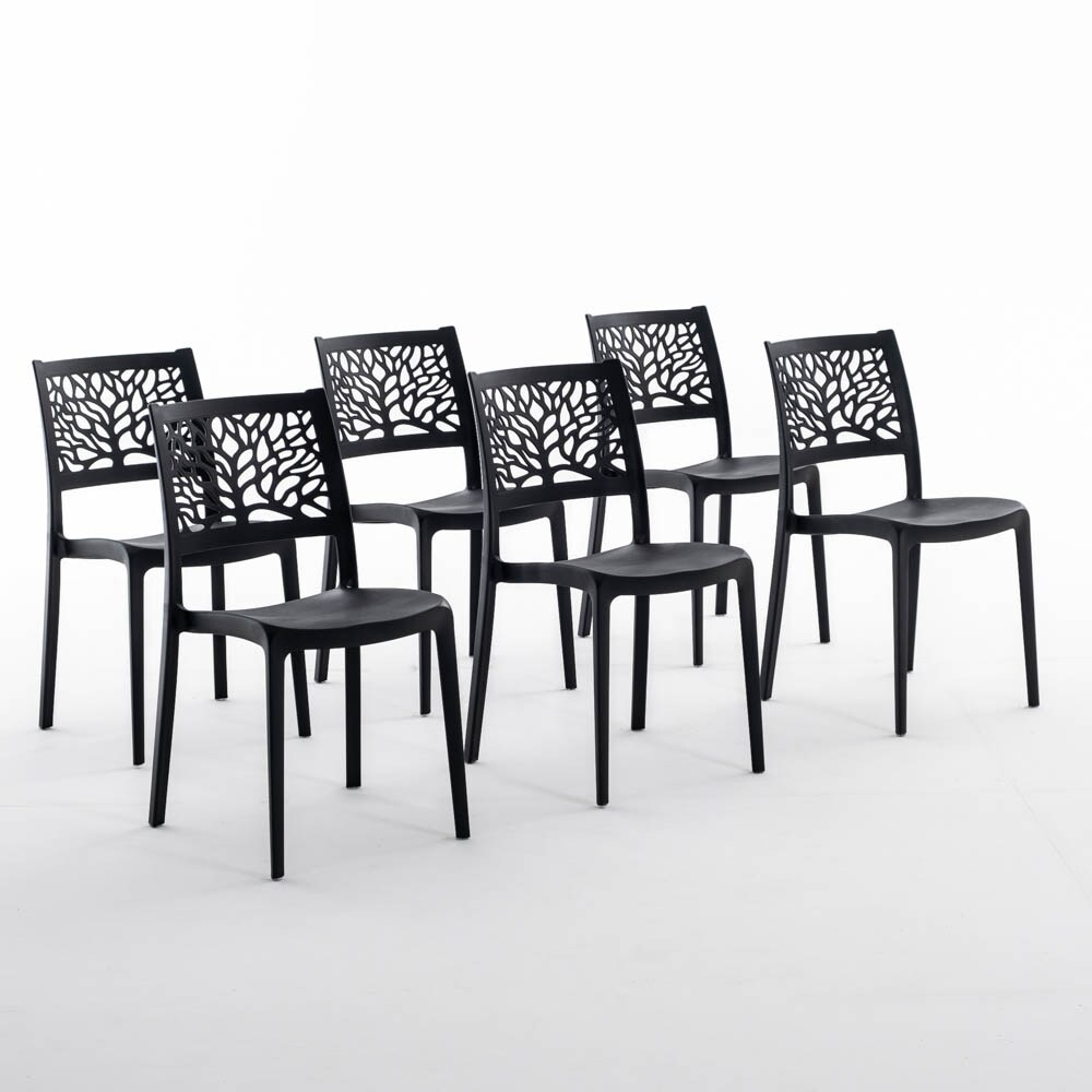 RATTATAN Set mit 6 stapelbaren Stühlen aus Polypropylen mit Glasfaser, für Garten, Bar und Restaurant, robuste und leichte Struktur – Vivian–Schwarz