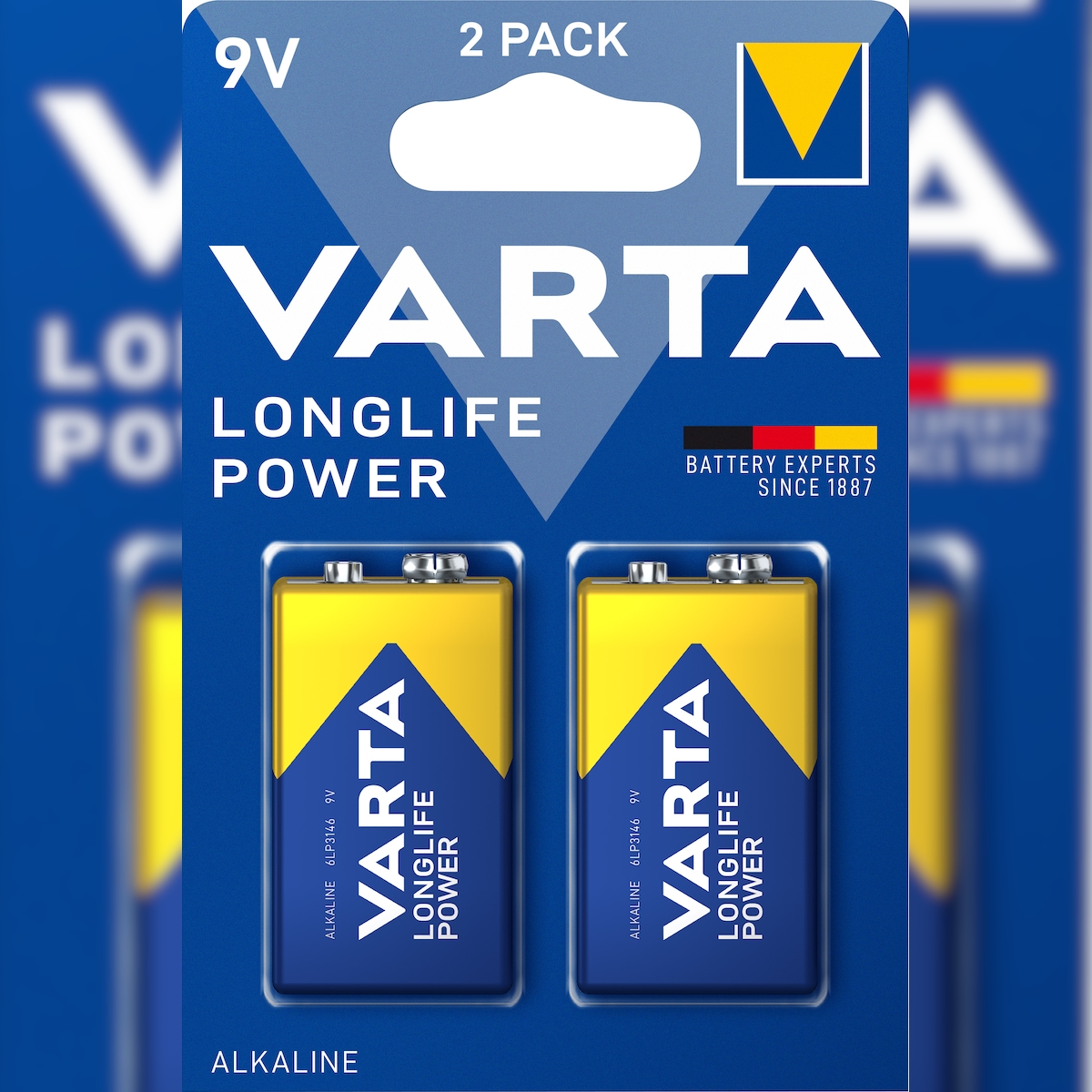 Varta Batterie Alkaline, E-Block, 6LR61, 9V Longlife Power, Retail Blister (2-Pack)