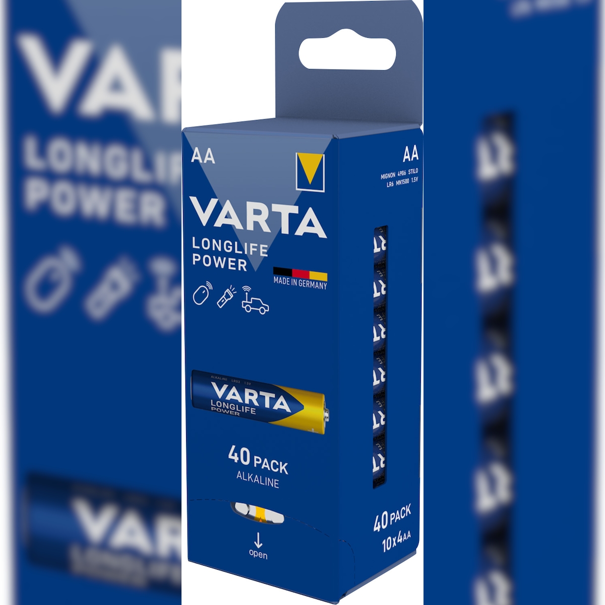 Varta Batterie Alkaline, Mignon, AA, LR06, 1.5V Longlife Power, Retail Box (40-Pack)