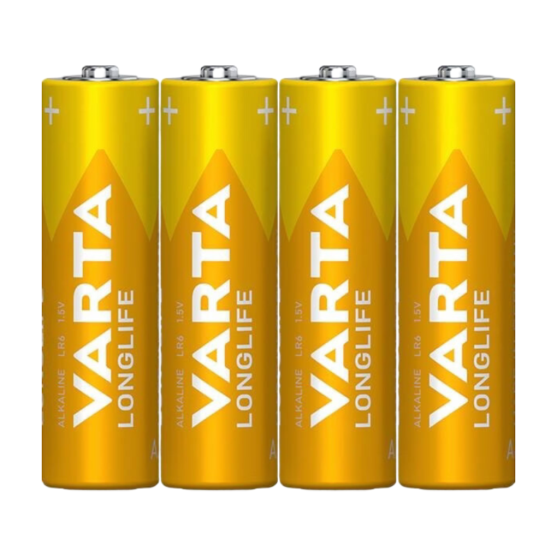 VARTA Batterie Alkaline, Mignon, AA, LR06, 1,5V Longlife, Schrumpffolie (4er-Pack)