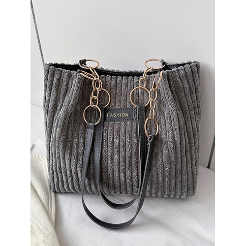 borsa a tracolla in velluto a coste da donna con cinturini in pelle, borsa casual di grande capacità per lo shopping, i viaggi, il lavoro e l'uso quotidiano