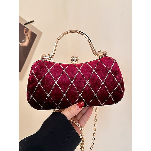 borsa da sera trapuntata in velluto da donna con dettagli di diamanti: elegante borsa a tracolla per feste di Natale, riunioni di festa e occasioni speciali