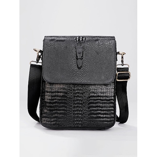 borsa a tracolla di lusso da uomo in pelle stampata coccodrillo - borsa a tracolla verticale multicolore per ufficio, lavoro e uso quotidiano