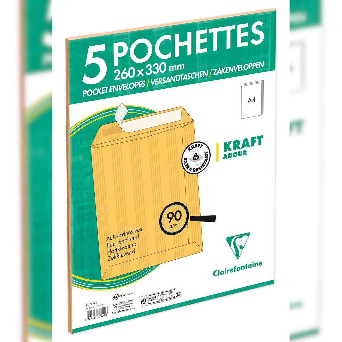 Clairefontaine 125x Versandtaschen haftklebend Kraft 260x330mm/B4 90g - Braun 7954C