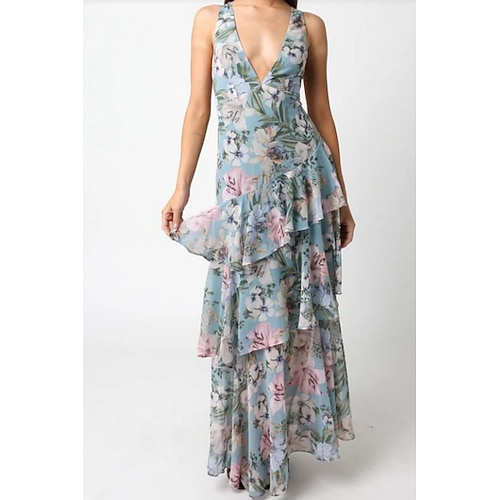 Per donna Abito maxi Abito a trapezio Abito con balze Casual All'aperto Uscire Vestibilità regolare Floreale Senza Maniche Scollo a V Giallo Rosa Rosso Verde scuro Estate Primavera