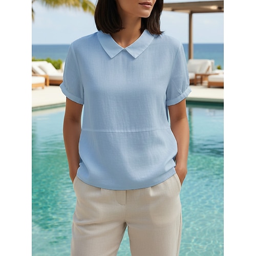 Per donna Camicia Camicie di cotone e lino Camicia da Spiaggia Blusa Semplice Elegante Classico Moderno Manica Corta Colletto a Camicia Top Regolari Quotidiano Ferie Abbigliamento mare Blu Bianco Blu