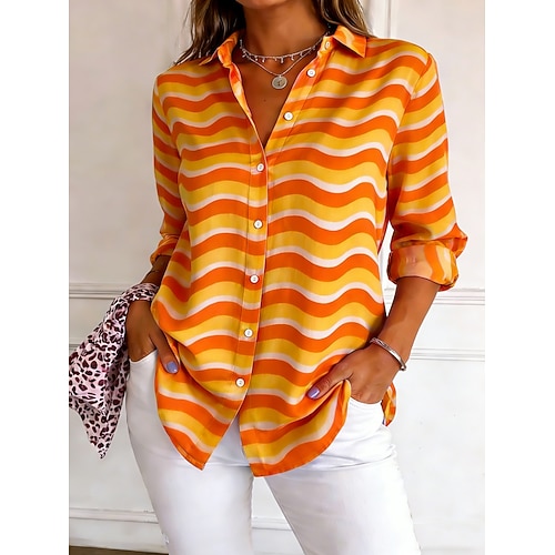 Per donna Camicia Camicia button-down Camicia casual Camicia da Spiaggia Stampato Grafico A righe Elegante Classico Casual Manica Lunga Colletto a Camicia Top Regolari Quotidiano Ferie Uscire Nero