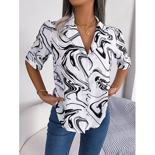 Per donna Camicia Camicia casual Camicia da Spiaggia Stampato Astratto Elegante Classico Moderno Manica Corta Colletto a Camicia Top Regolari Quotidiano Ferie Uscire Blu Bianco Cachi Estate Primavera