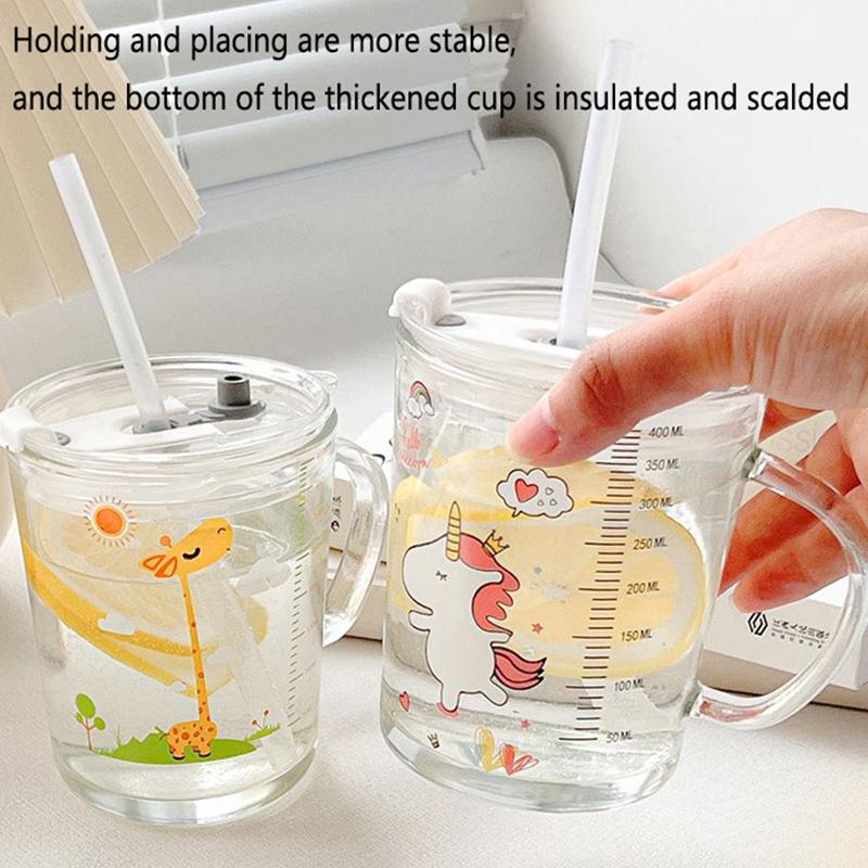 Kids Straw Cup With Lid And Handle Cute Glass Tumbler Baby Feeding Water Bottle Cartoon Glass Cup For Kids Drinkw