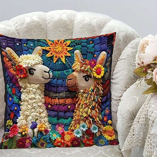 Federa per cuscino con motivo floreale, stampa piatta 2D, morbida e confortevole, con ricamo finto, per soggiorno, divano, camera da letto, decorazione per la casa