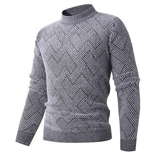 Per uomo Felpa Maglione A Coste Maglia Top Regolari Lavorato a maglia Slim Fit Semplice Collo Alto Maglieria Contemporaneo Casuale Abbigliamento quotidiano Abbigliamento Autunno Grigio chiaro Grigio