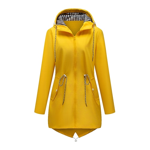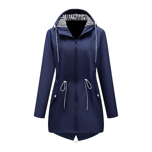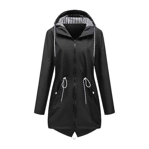 Giacca impermeabile da donna, antivento, con cappuccio, 2 tasche, cerniera, foderata, cintura regolabile, giacca casual da campeggio impermeabile