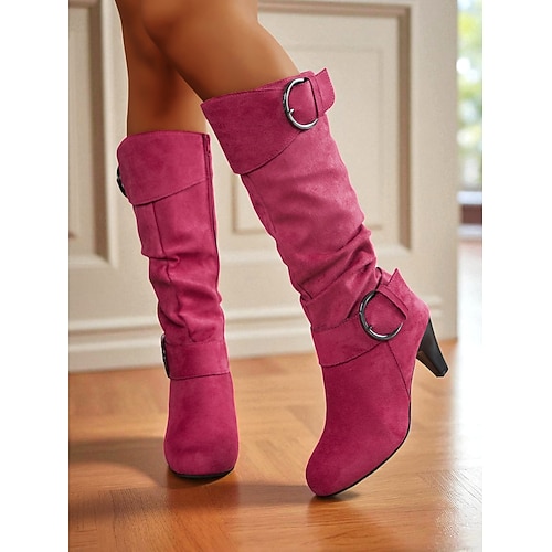 stivali alti fino al ginocchio in pelle scamosciata rosa da donna con fibbia – eleganti stivali invernali con tacco medio per outfit da festa, feste di San Valentino e look street fashion