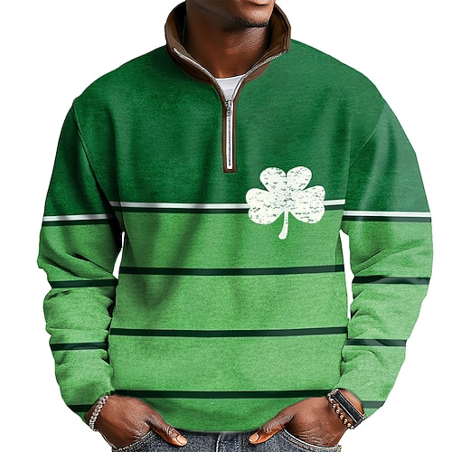 Giorno di San Patrizio Per uomo Trifoglio Irlanda Felpa Sport Moda Casual Collo Alto Con cerniera Casa Abbigliamento casual alla moda Lavoro Feste Verde 2# Verde 3# Bianco Verde Autunno Tutte le