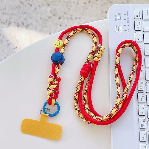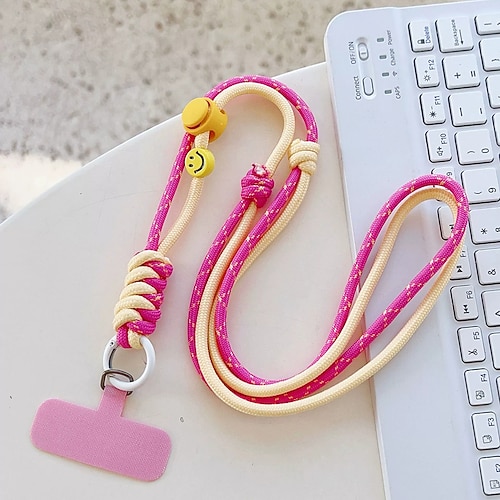 nuova tracolla alla moda e di tendenza con corda lunga regolabile per cellulare da appendere al collo e a tracolla, graziosa catena appesa con faccina sorridente, robusta corda appesa per esterni da