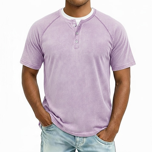 Per uomo Tartaruga di mare Lavato Maglietta Top Henley Camicia lavata Manica Corta Vintage Designer Casual Casuale Quotidiano All'aperto Estate Primavera Tutte le stagioni Blu chiaro Viola Grigio