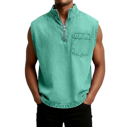 Per uomo Canotta Camicia di Jeans Camicia lavata con acido Senza Maniche Collo alla coreana Henley Estate Primavera Semplice Vintage Streetwear Casual Lavato angosciato Casuale Casa Streetwear Nero