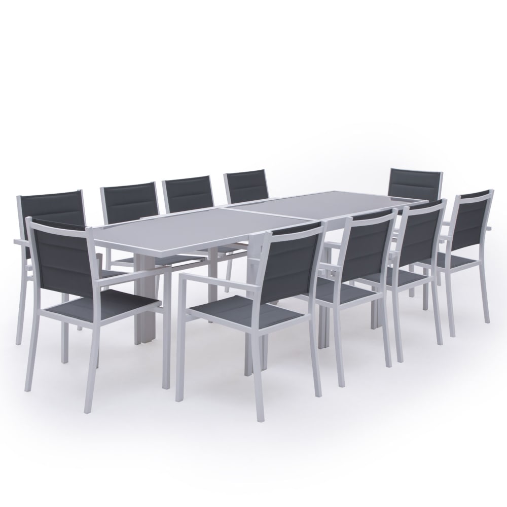 Set di mobili da giardino da 6 a 10 posti in alluminio bianco e grigio